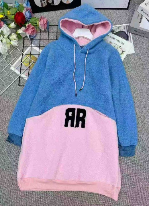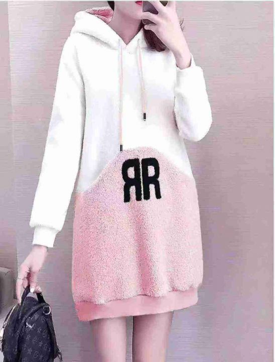 羊羔绒长款过膝加绒连帽卫衣 ,数量:140件,码数: S-M-L-XL-2XL,有独立包装 5.9元清