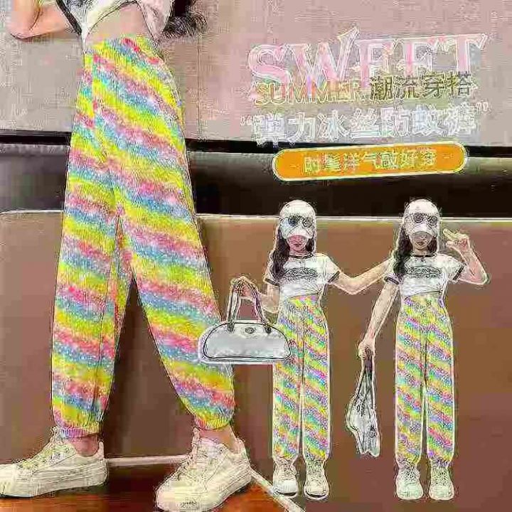 童装冰丝裤,女童夏季速干休闲束脚彩色冰丝裤,松紧腰...