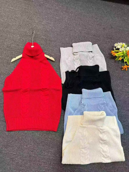 辣妹露背春夏秋冬高领性感无袖针织套头毛衣,面料质感很好百搭大货干净带独立包装,均码五个颜色一共280件,全清价:7.5元
