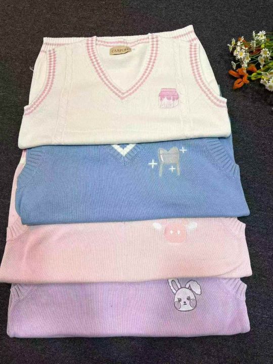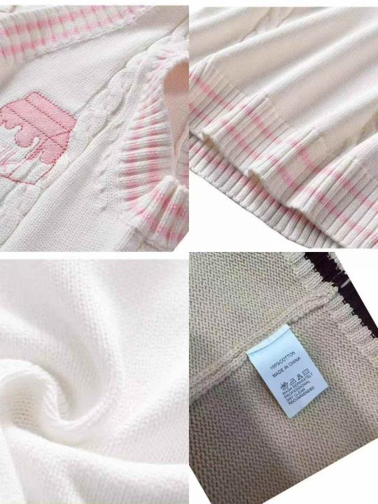 针织马甲女甜美日系jk制服坎肩学院风可爱V领女背心,品质好[强]面料舒服,图案颜色多码数为S一2XL带独立包装大货整洁干净。共750件,全清价:6.8元