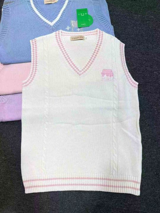 针织马甲女甜美日系jk制服坎肩学院风可爱V领女背心,品质好[强]面料舒服,图案颜色多码数为S一2XL带独立包装大货整洁干净。共750件,全清价:6.8元