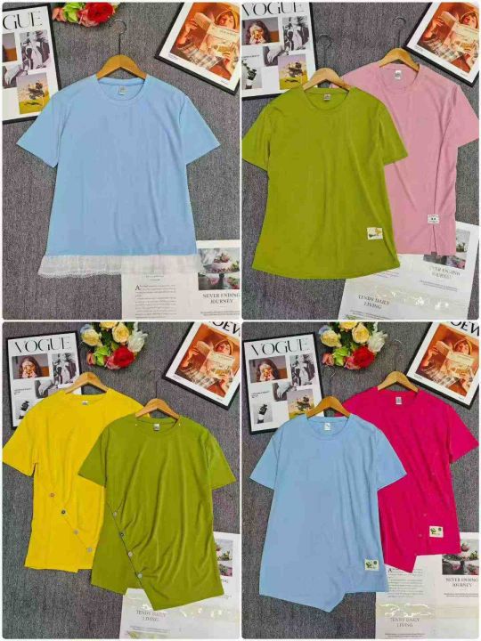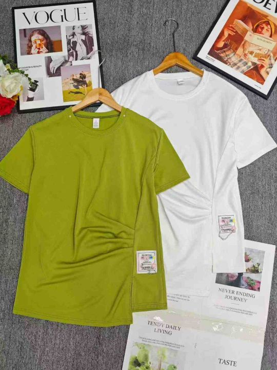 电商仓回收654件马卡龙色系宽松显瘦韩版女不规则ins潮短袖T恤,码数S-2XL。下摆刺绣工艺特别好看,独立包装,分货➕0.5