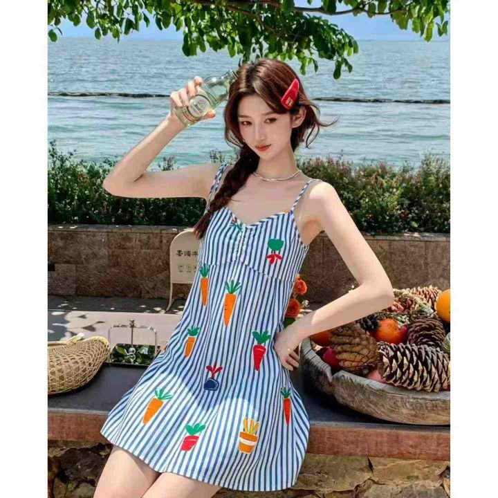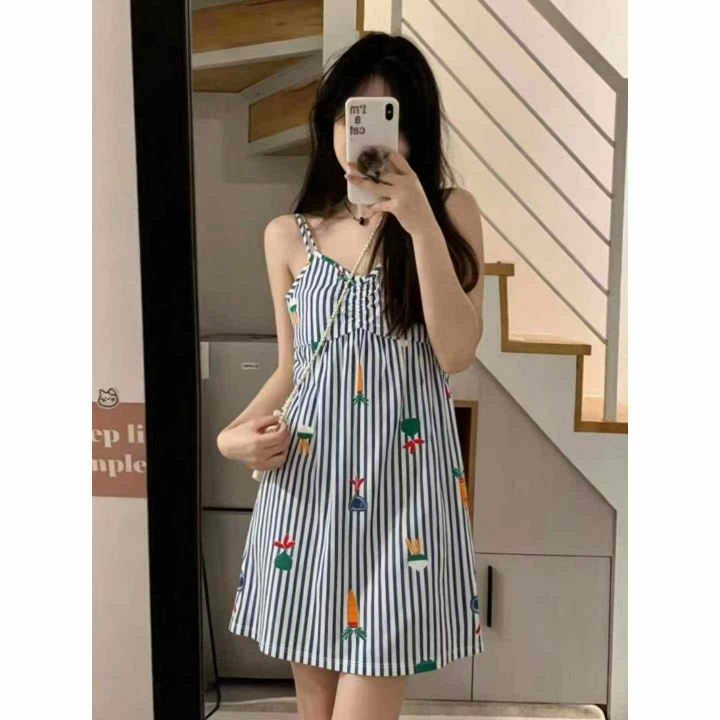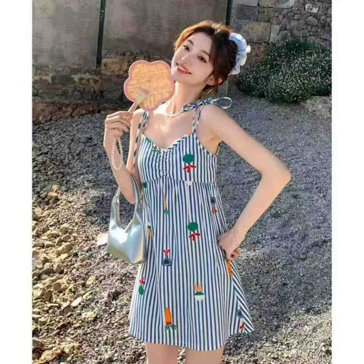 电商仓回收1700件蓝白条纹甜美可爱邻家少女吊带连衣裙,码数均码,80-130斤可穿。面料柔软舒适,大货齐整,带吊牌独立包装,分货➕0.5