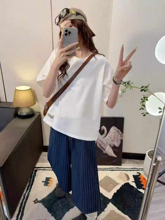 电商仓回收654件马卡龙色系宽松显瘦韩版女不规则ins潮短袖T恤,码数S-2XL。下摆刺绣工艺特别好看,独立包装,分货➕0.5