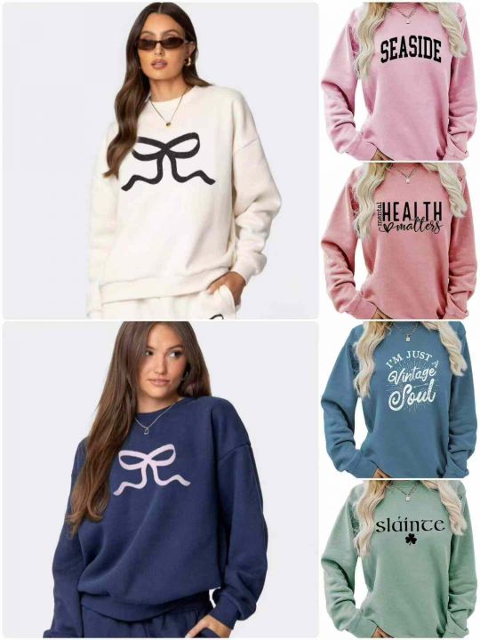 工厂回收2081件亚马逊外贸跨境热卖圆领时尚休闲女士卫衣系列,码数S-3XL。版型宽松,质量很好。独立包装。分货➕0.5