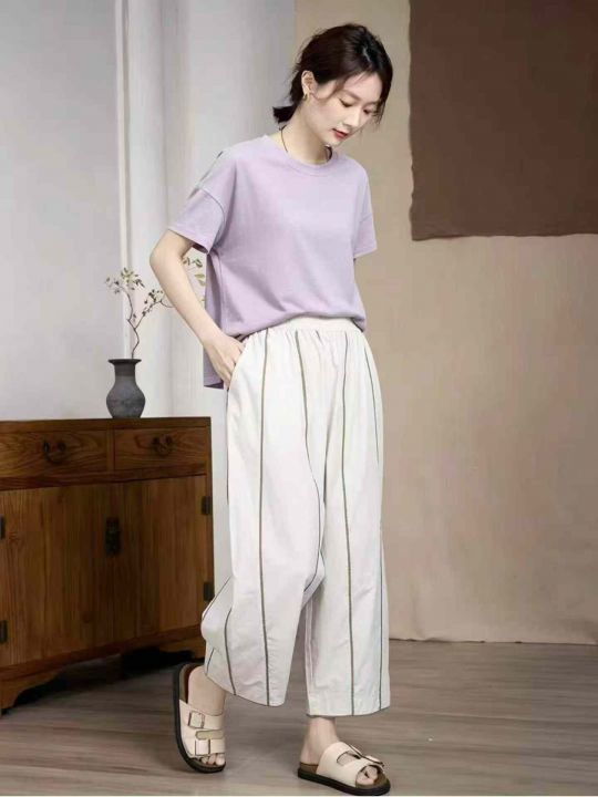 7.9清天猫仓回收353件夏季新款靓妹慵懒港风条纹纯棉200克短袖T恤,码数M-2X...