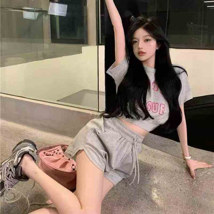 休闲运动套装女夏季甜辣风网红炸街女生酷帅穿搭短裤两...