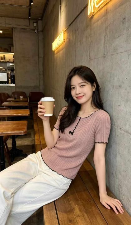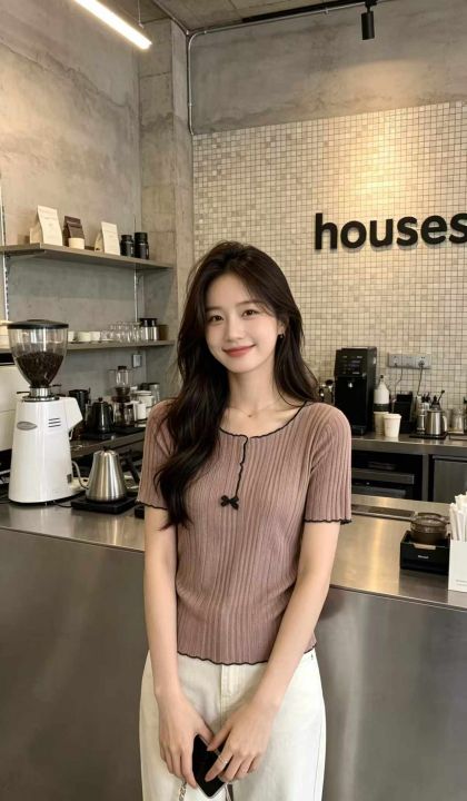 高级感蝴蝶结冰丝镂空正肩针织短袖t恤女修身显瘦短款打底上衣夏,数量335件,smlxl,5件一个包装,全清4.5元