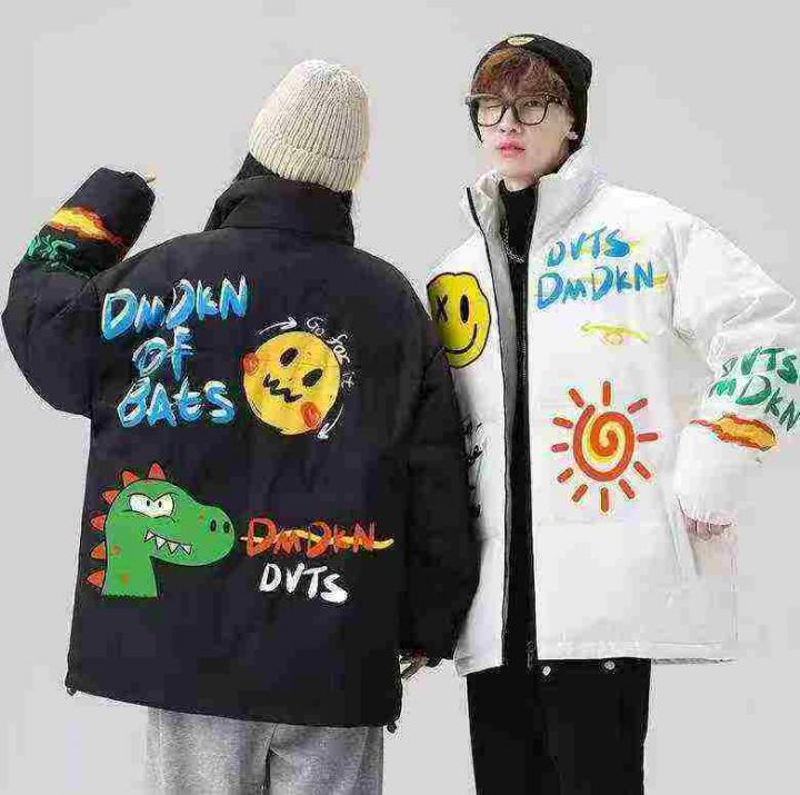 宽松情侣款羽绒棉服38件29,前后图案印花,防风袖口设...