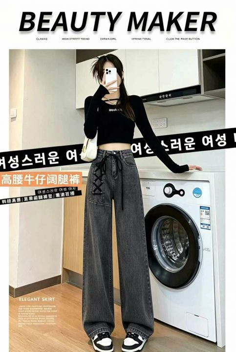 美式阔腿牛仔裤女新款设计感小众高腰宽松直筒拖地长裤子316条全清12.8元,码数S到XL,正品独立包装[庆祝][庆祝][庆祝]