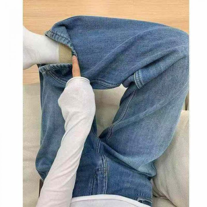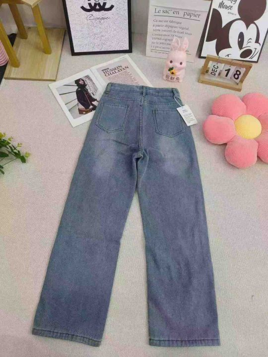 破洞阔腿牛仔裤女春夏薄款高腰宽松拖地直筒裤子127条全清11.8元,码数SML,...