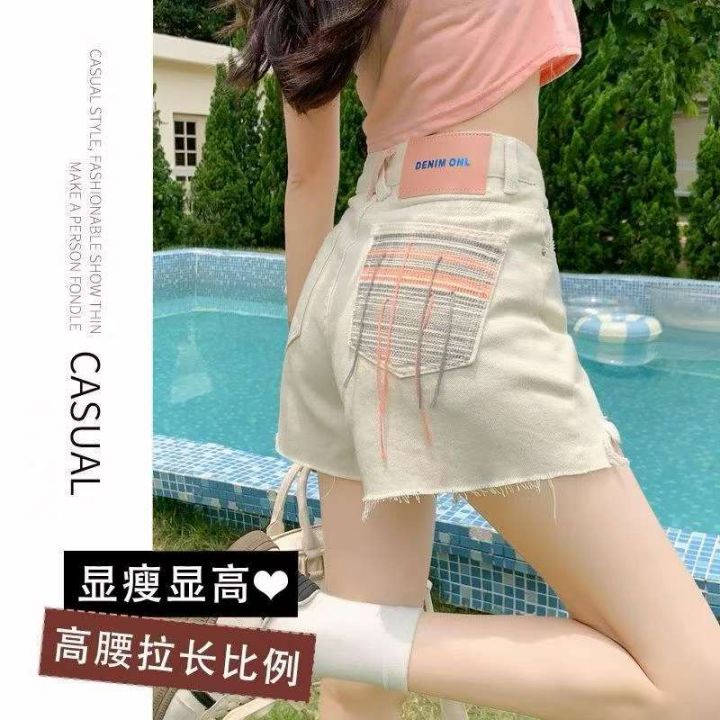 米白色高腰牛仔短裤女夏季新款宽松显瘦a字网红辣妹热...