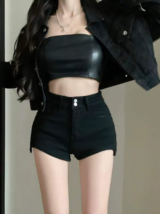 辣妹黑色弹力牛仔短裤女新款显瘦a字外穿热裤160条全清...