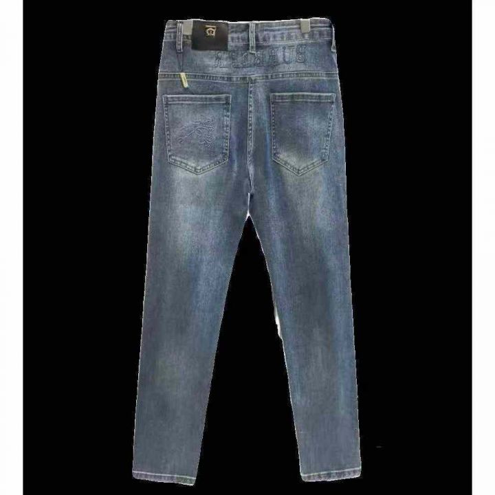 春夏季新款刺绣印花牛仔裤男士休闲修身小脚裤百搭弹力男九分裤子,独立包装...