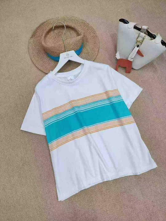 [月亮]:7.5清256件[月亮]:简约条纹拼色休闲纯棉包边...