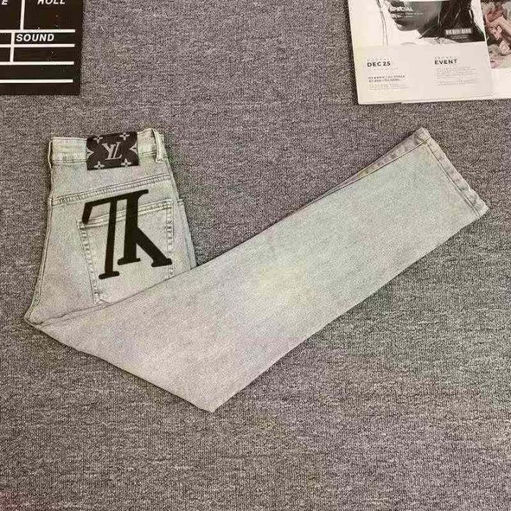 新款高档轻奢男士浅色牛仔裤修身小直筒微弹水洗简约百搭长裤,独立包装,50...