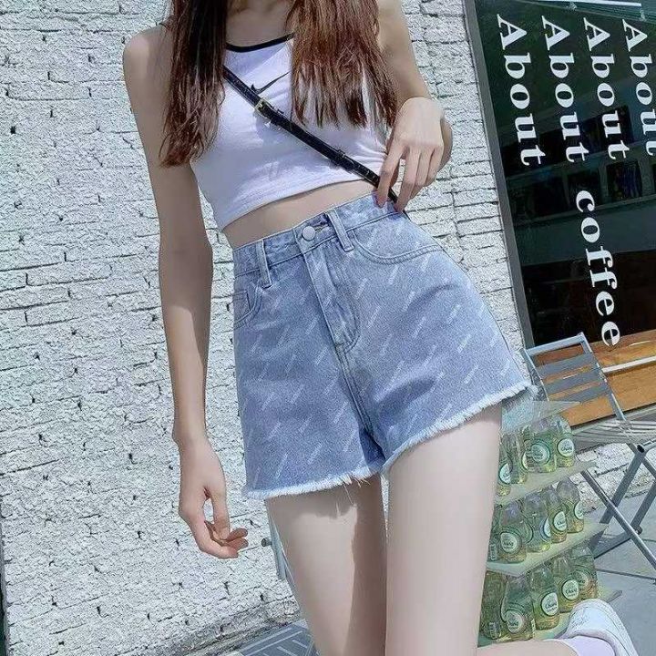 爆款夏季印花字母辣妹牛仔短裤高腰显瘦牛仔热裤280条...