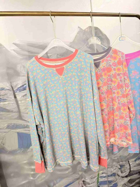 秋夏季长袖T恤花色套头宽松百搭通勤休闲衣,防水袋装,S -2 XL码,180件左右,全清2.99