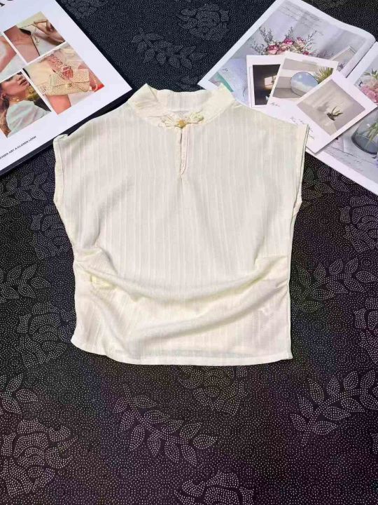 新中式国风棉麻短袖衬衫女
