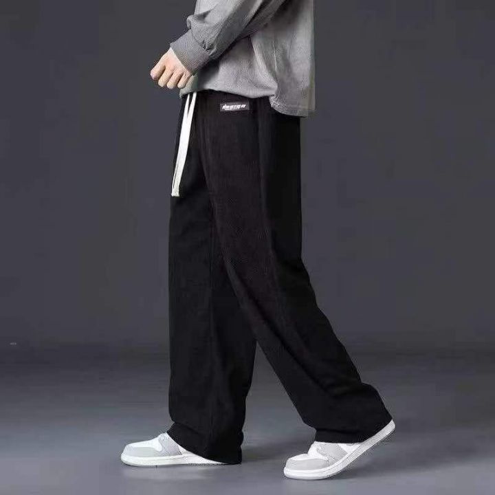 清8.8灯芯绒裤子男春秋季潮牌直筒卫裤男生垂感阔腿裤宽松休闲运动长裤,码...