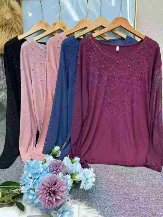 全清6.9元韩版V领钉珠烫钻长袖T恤女款 1913件 1-7码 ...