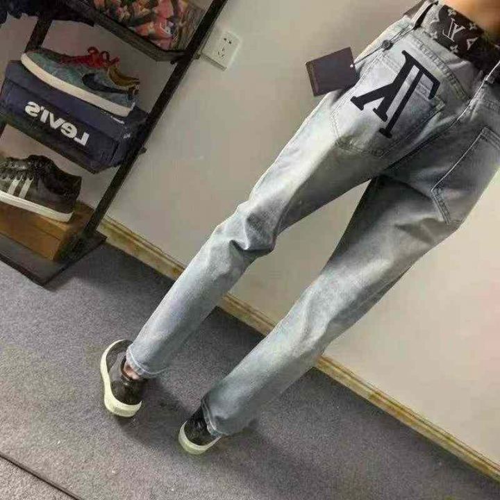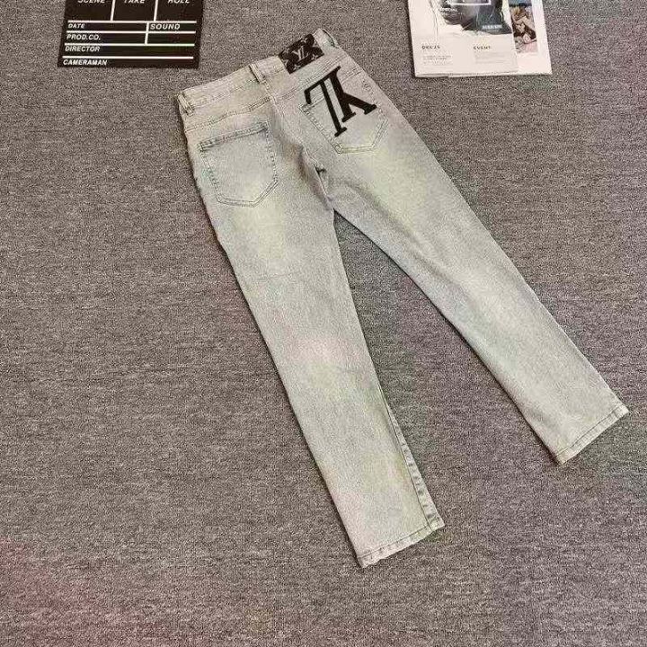 新款高档轻奢男士浅色牛仔裤修身小直筒微弹水洗简约百搭长裤,独立包装,504件,全清13.8分货+1