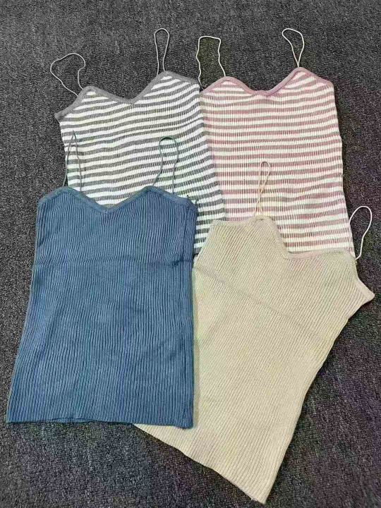 1478件针织吊带背心,条纹木耳边设计,一款7色,超弹力,穿着舒服,修身显...