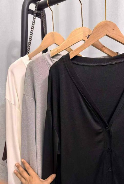 慵懒风垂坠感宽松V领长袖休闲开衫外套,独立包装,整款三色,弹力好,码数1-3(S-L),数量150件