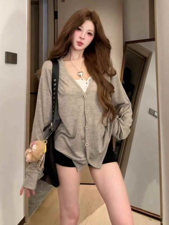 全清价6.8慵懒风垂坠感宽松V领长袖休闲开衫外套,独立...
