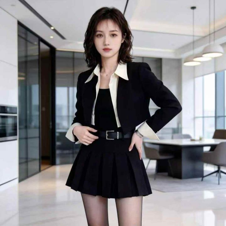 设计感气质减龄假两件套西服学院风百褶裙短裙套装,含皮带,独立包装,整款两色,码数1/2/3/4/6,数量219套