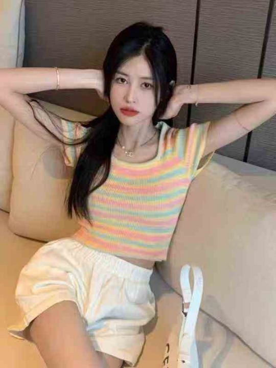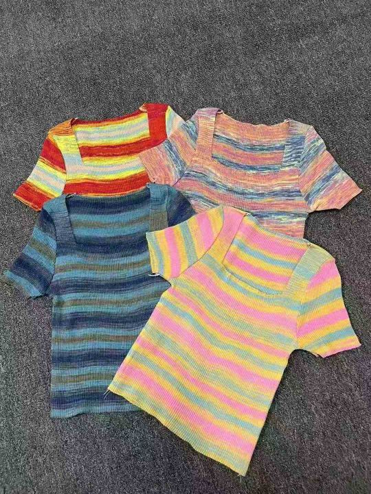 1140件靓妹条纹针织短袖,夏季新款,修身显瘦,弹力好,短款设计,面料柔软不扎人,穿着舒服,均码110斤左右,适合大部分身材,大货干净无瑕疵,全清4.8元,分1