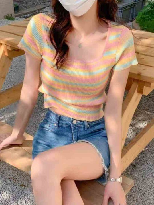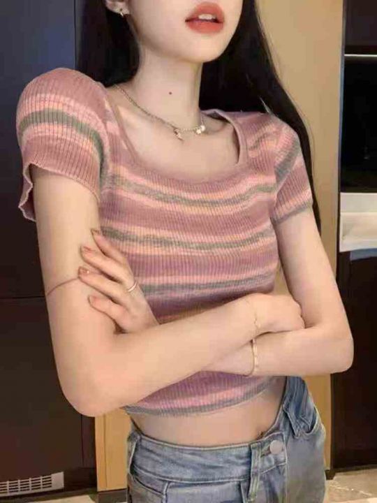 1140件靓妹条纹针织短袖,夏季新款,修身显瘦,弹力好...