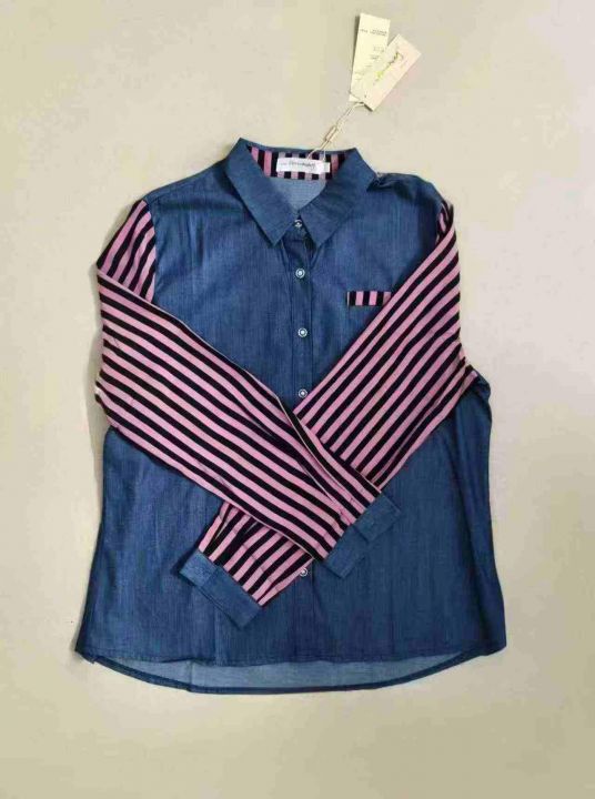 4.9清 70件蓝底拼粉黑条纹,撞色超亮眼。宽松版...