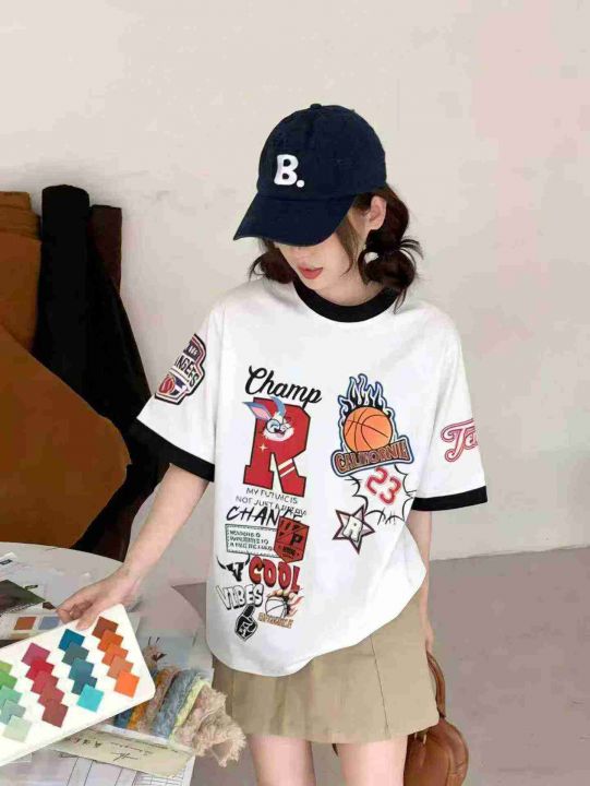 全清6.5元数字印花短袖T恤女圆领休闲百搭潮流时尚上衣...