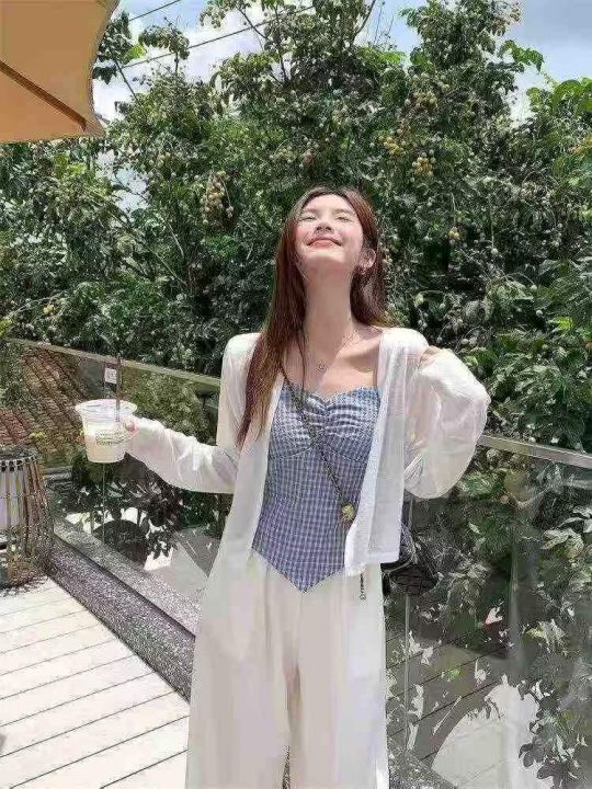 上新全清:12.8一套韩系不规则设计感格子吊带➕防晒开...