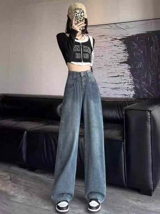 春夏季新款设计款肌理感复古高腰直筒阔腿牛仔裤,独立包装带吊牌,码数S--L...
