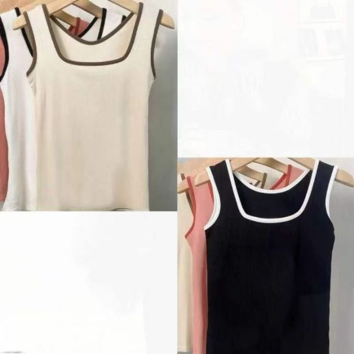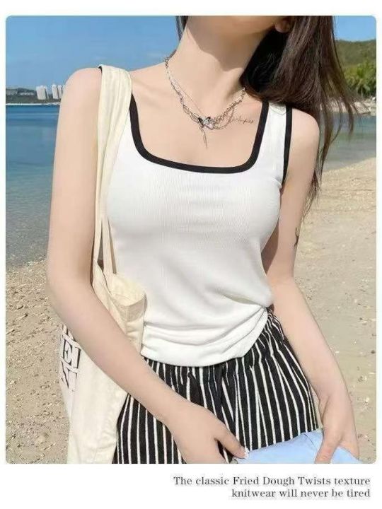 清3.8分货➕0.5新款方领撞色背心女内搭春夏新款宽肩带...