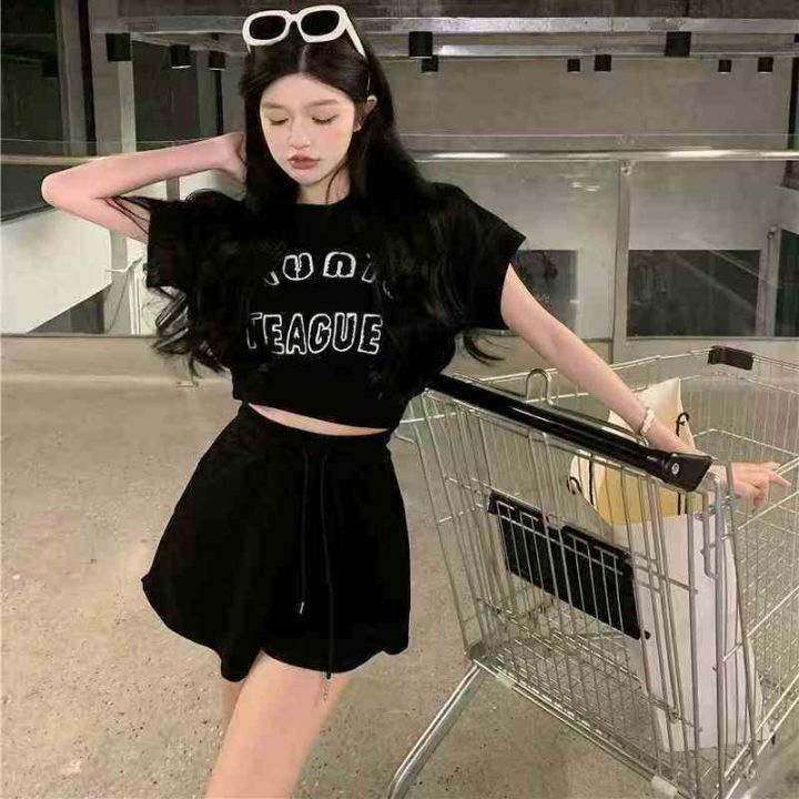休闲运动套装女夏季甜辣风网红炸街女生酷帅穿搭短裤两...