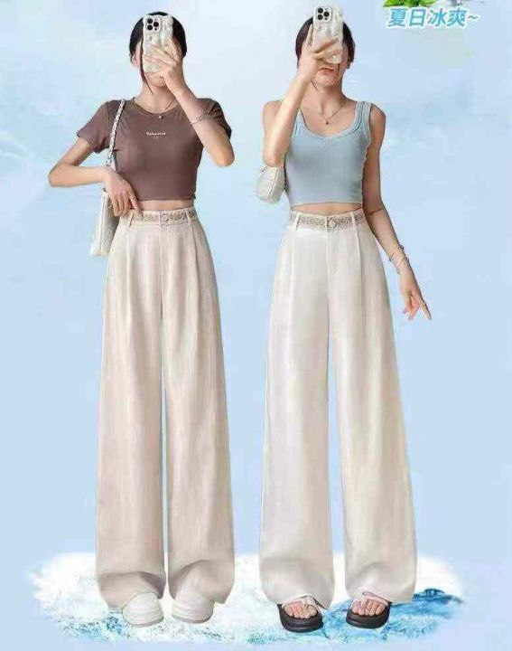 ☕️夏季冰丝阔腿裤名媛慵懒风抽绳高腰纹理春季新款宽...