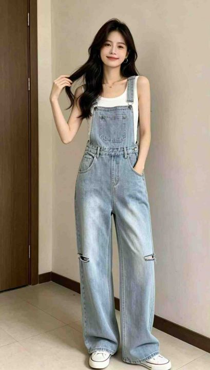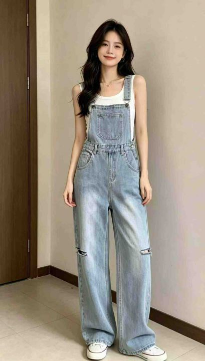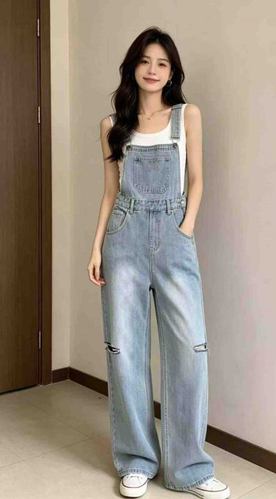 春夏季新款品牌原单宽松百搭破洞设计款直筒阔腿牛仔背带长裤,独立包装,码数S- L码,200件左右,全清8.9元超低价秒杀!