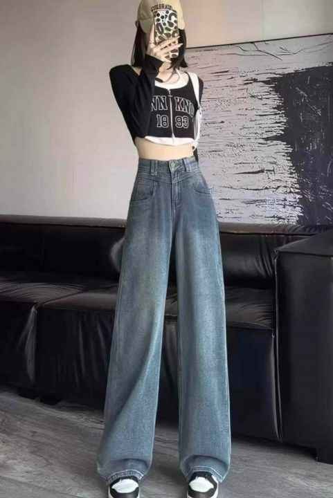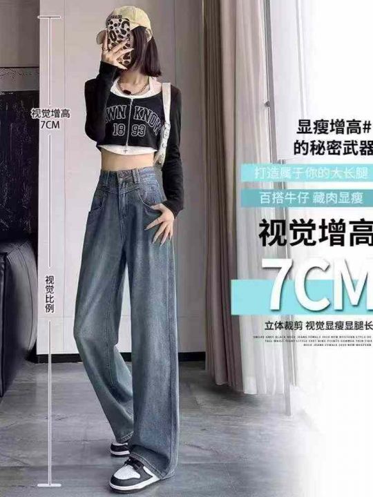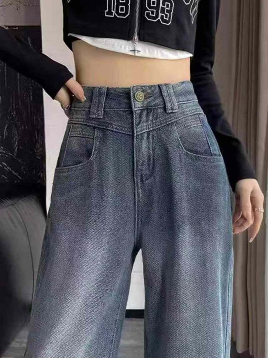 春夏季新款设计款肌理感复古高腰直筒阔腿牛仔裤,独立...