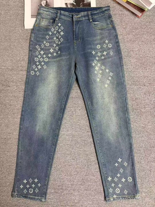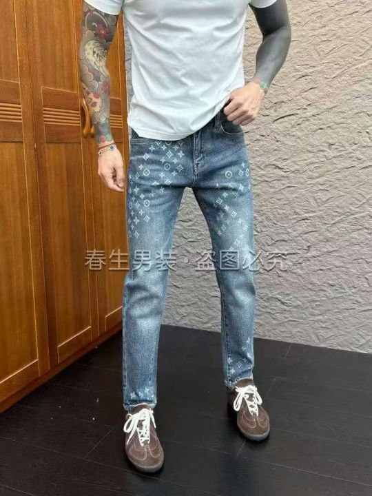 高端美式复古提花印花小脚直筒牛仔裤男士修身欧货长裤子,独立包装,990件,尺码28-34码