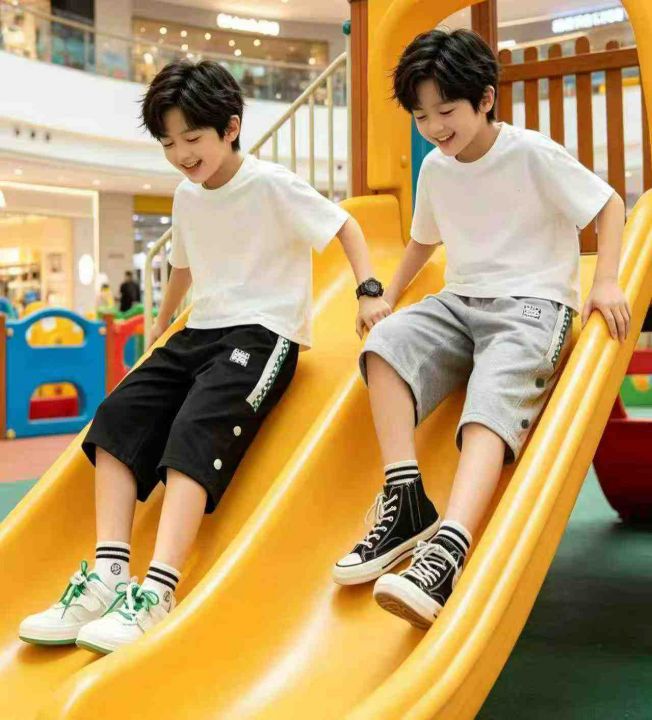 中大男童休闲薄款华棉运动炸街五分短裤,独立包装,整款两色,质量可入实体店,码数120-170,数量345条,分货加1,(DK24)