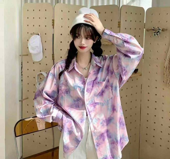 扎染小众港味薄款长袖宽松衬衫,数量:1554件,码数: 1-5相当于S-M-L-XL-2XL,有独立包装,3.9元清,拿一半4.5元