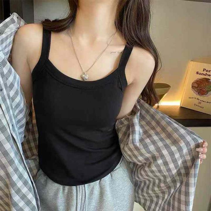 大码辣妹风无袖法式女装吊带小衫,整款两色,高弹力,...