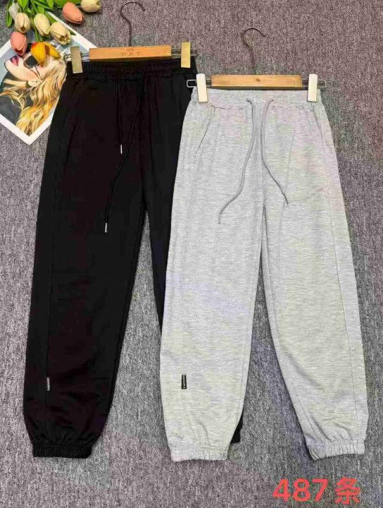 春秋新款品牌外贸原单宽松净版百搭松紧腰束脚纯棉休闲卫裤,独立包装带吊牌...
