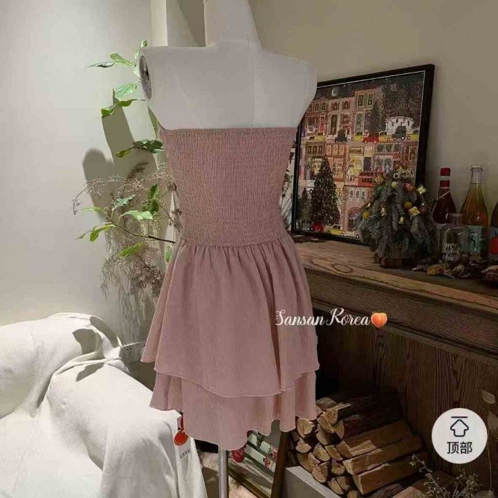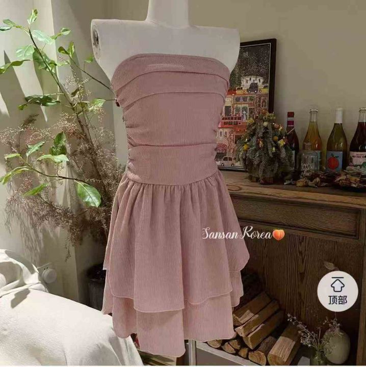 明星同款美式褶皱夏荷叶边设计抹胸连衣裙,独立包装,XS-XL码,1040件,清7.8,分➕0.5