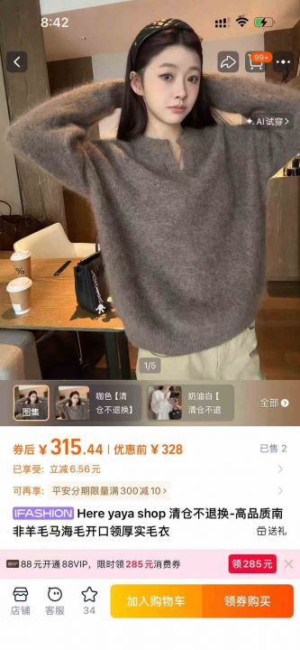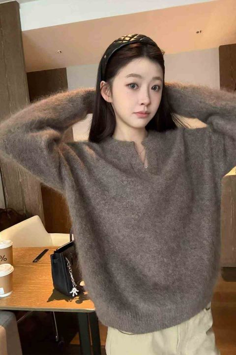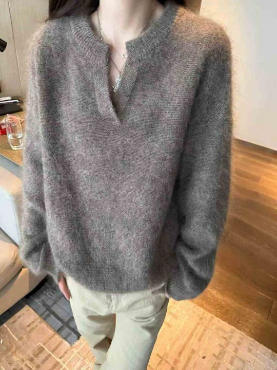 水貂毛亨利领针织毛衣秋冬新款V领套头宽松显瘦慵懒风上衣,独立包装,317件,清12.8,分➕1