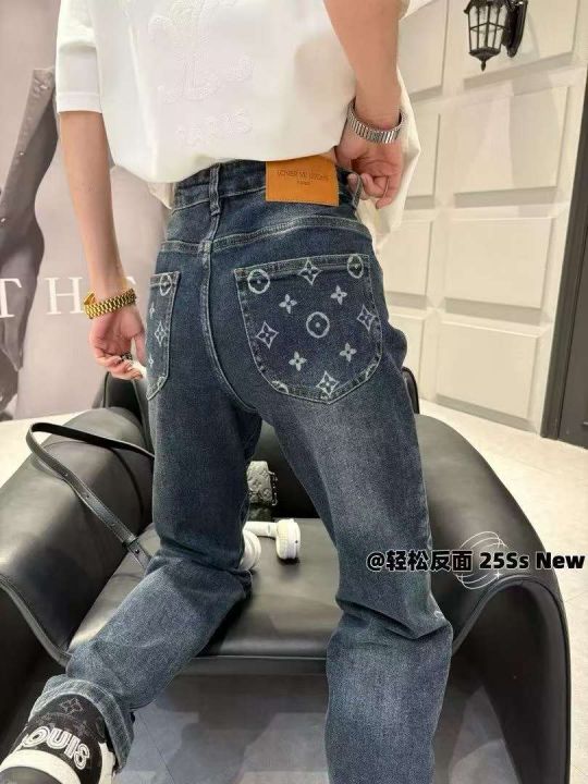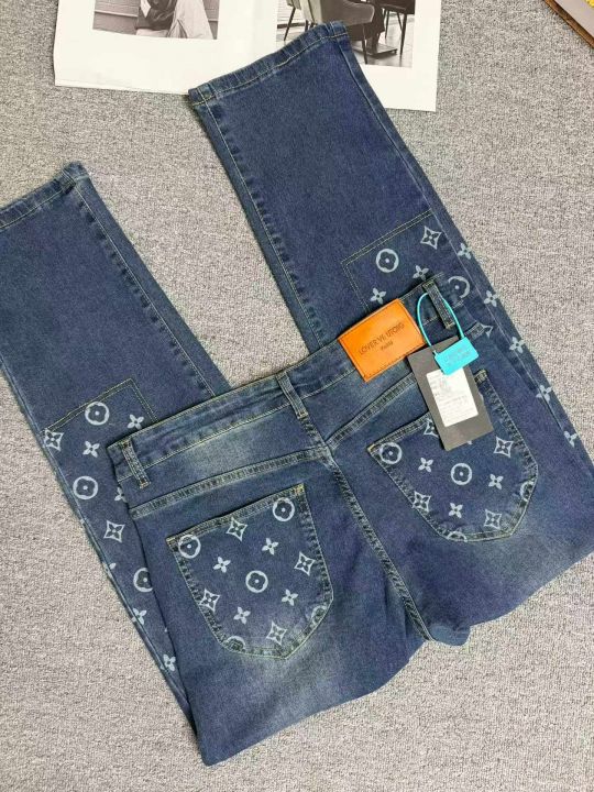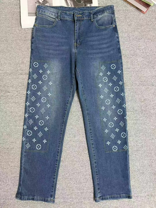 潮牌高端拼接牛仔裤男士潮牌美式印花百搭个性轻奢长裤,独立包装带防伪扣,数量700条,尺码28-34码