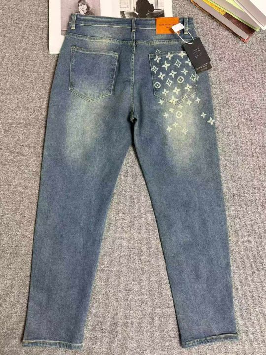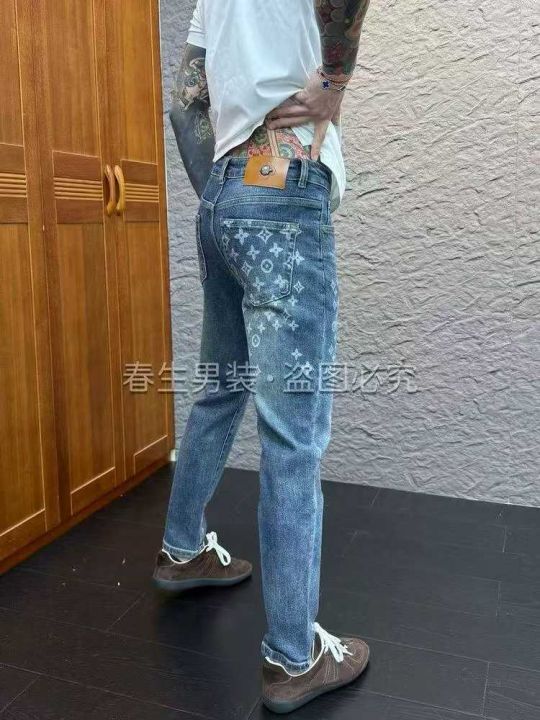 高端美式复古提花印花小脚直筒牛仔裤男士修身欧货长裤子,独立包装,990件,尺码28-34码